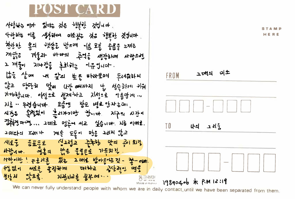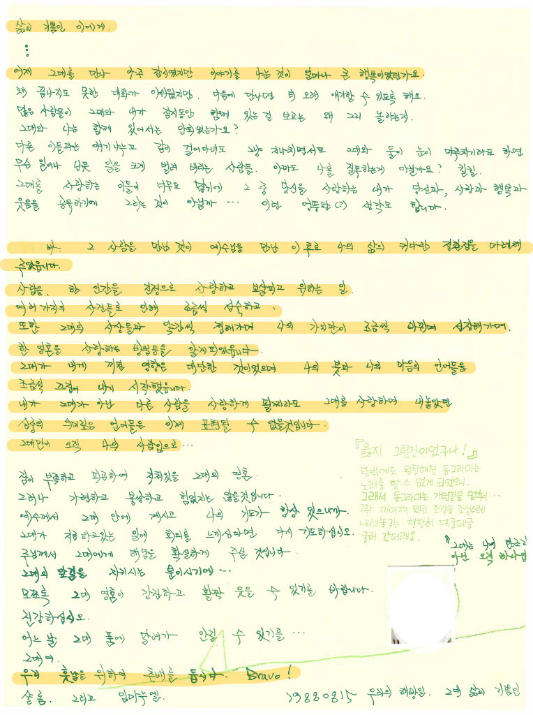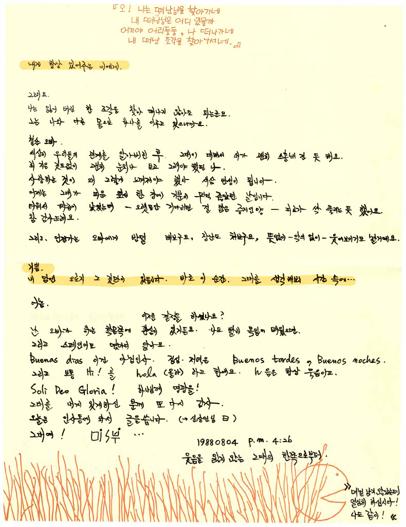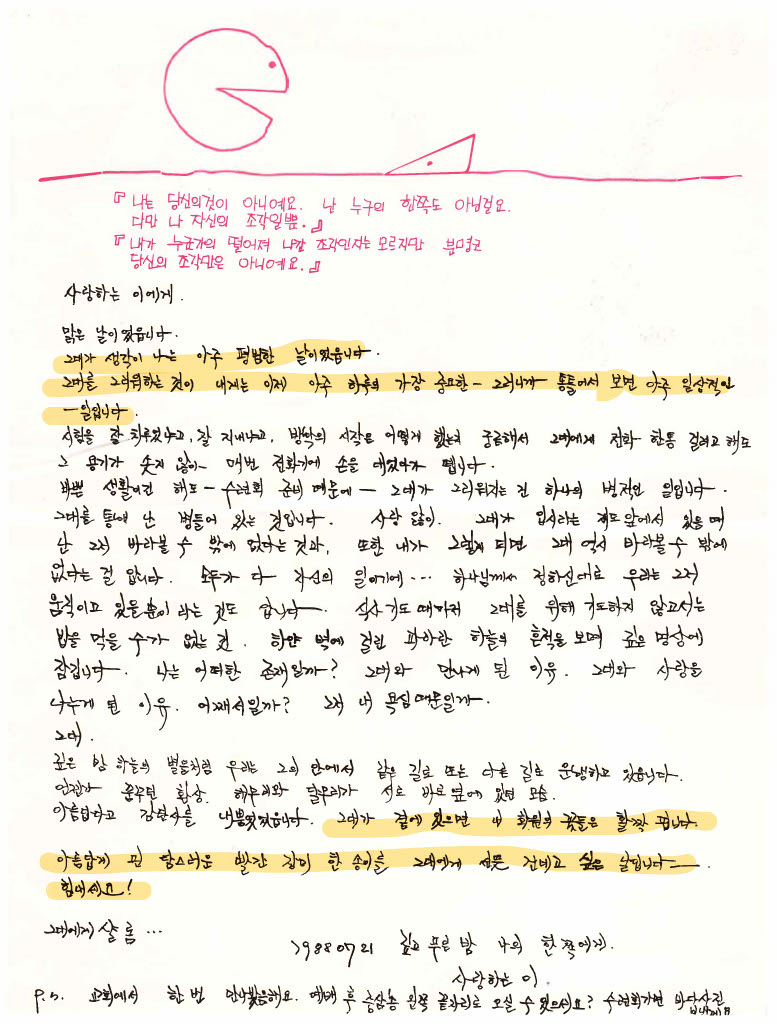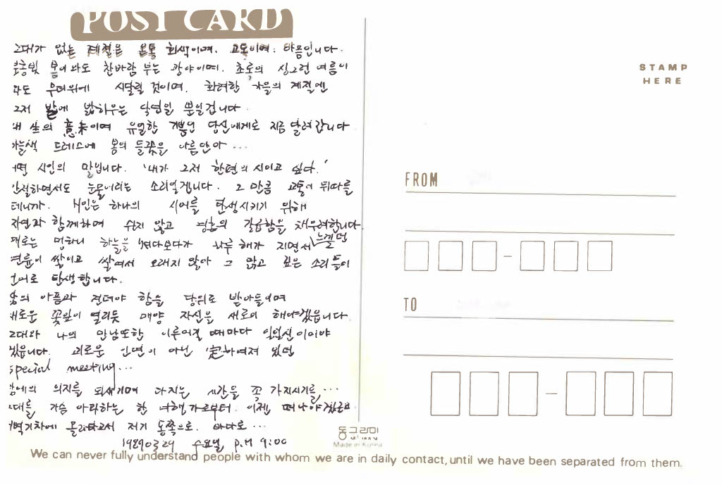 이 편지 자세히 보시고 내 꿈에 와서 자네 모습 자세히 보여주시고 또 말해주세요