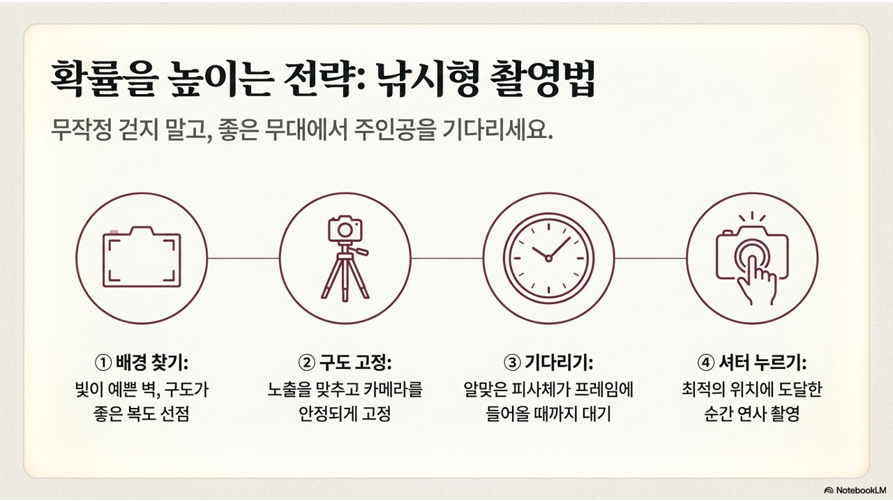 🎣 낚시형 촬영법 — 확률을 높이는 전략