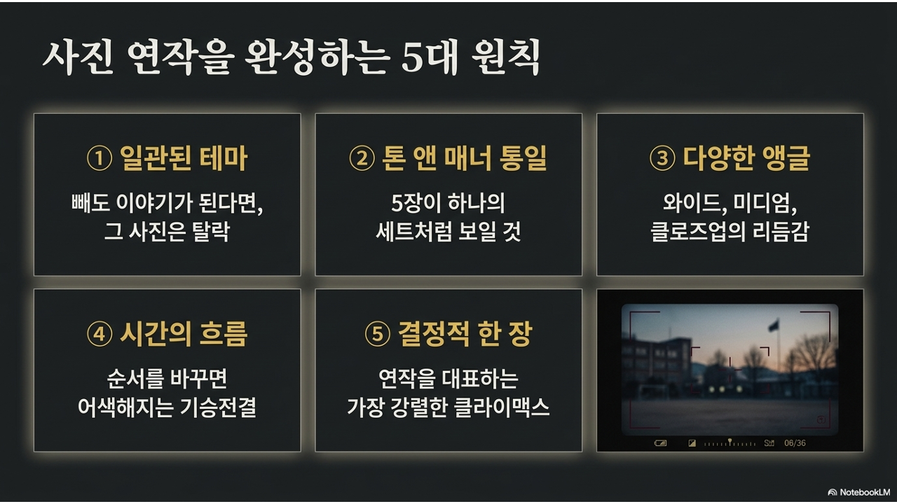 좋은 사진 연작에는 다섯 가지 원칙이 있습니다. 점검표처럼 활용하세요.
