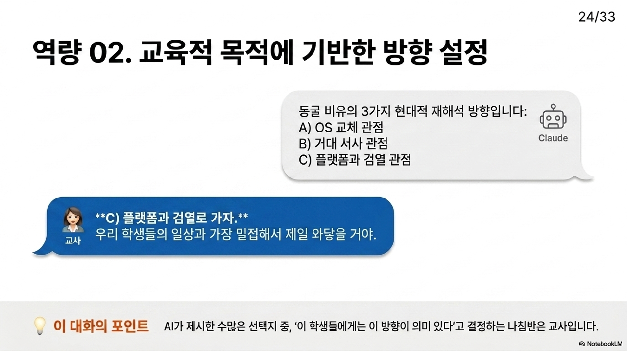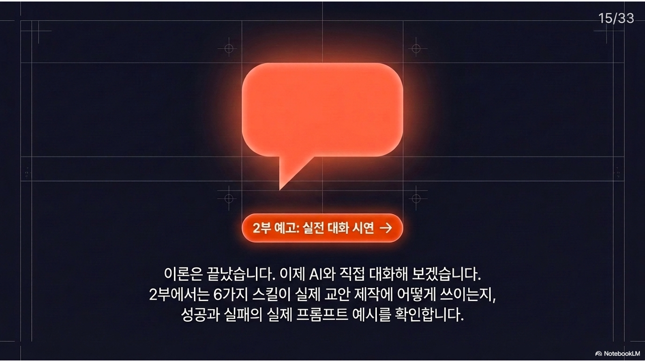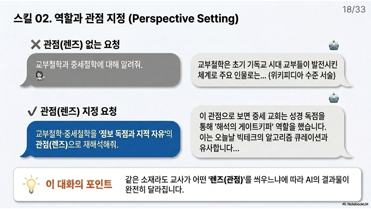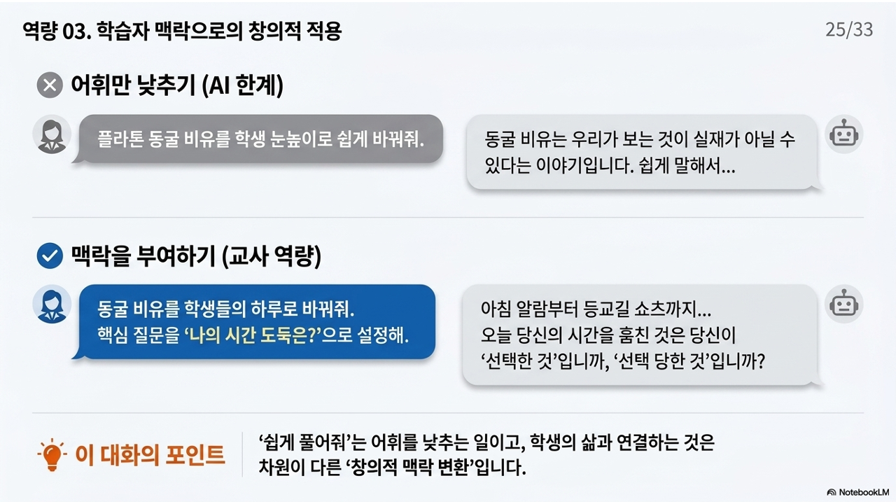 - 스킬이 부족하면 역량이 있어도 AI에게 교사의 의도를 제대로 전달하지 못합니다.