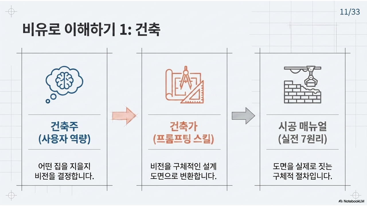 ANALOGY 1 건축 — 집을 짓는 세 역할 |