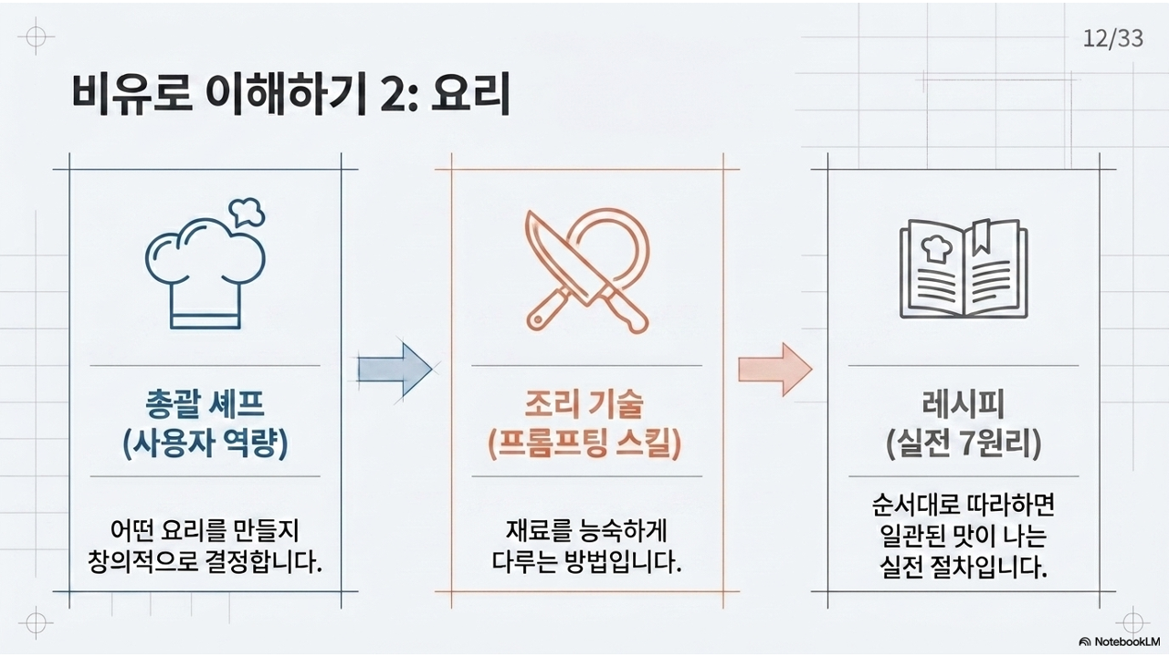 ANALOGY 2 요리 — 한 접시를 완성하는 세 역할 |