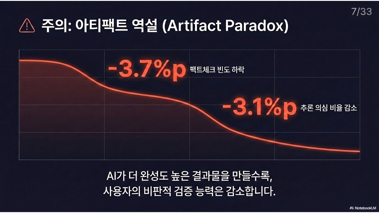 사용자의 비판적 검증 능력은 오히려 감소합니다.