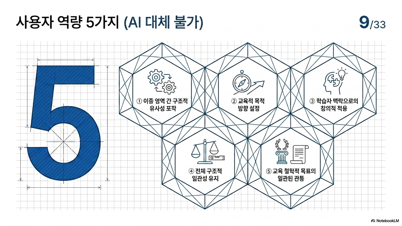 사용자 역량 · 5가지 AI가 대체할 수 없는 교사 고유 능력 · "무엇을, 왜" 결정하는 나침반 |